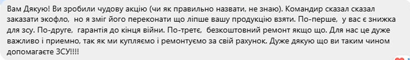 Наша компанія розуміє, що для військових дуже важливо мати саме надійне джерело електроживлення у будь-яких умовах, тому ми надаємо безкоштовно сервісне обслуговування для військових.