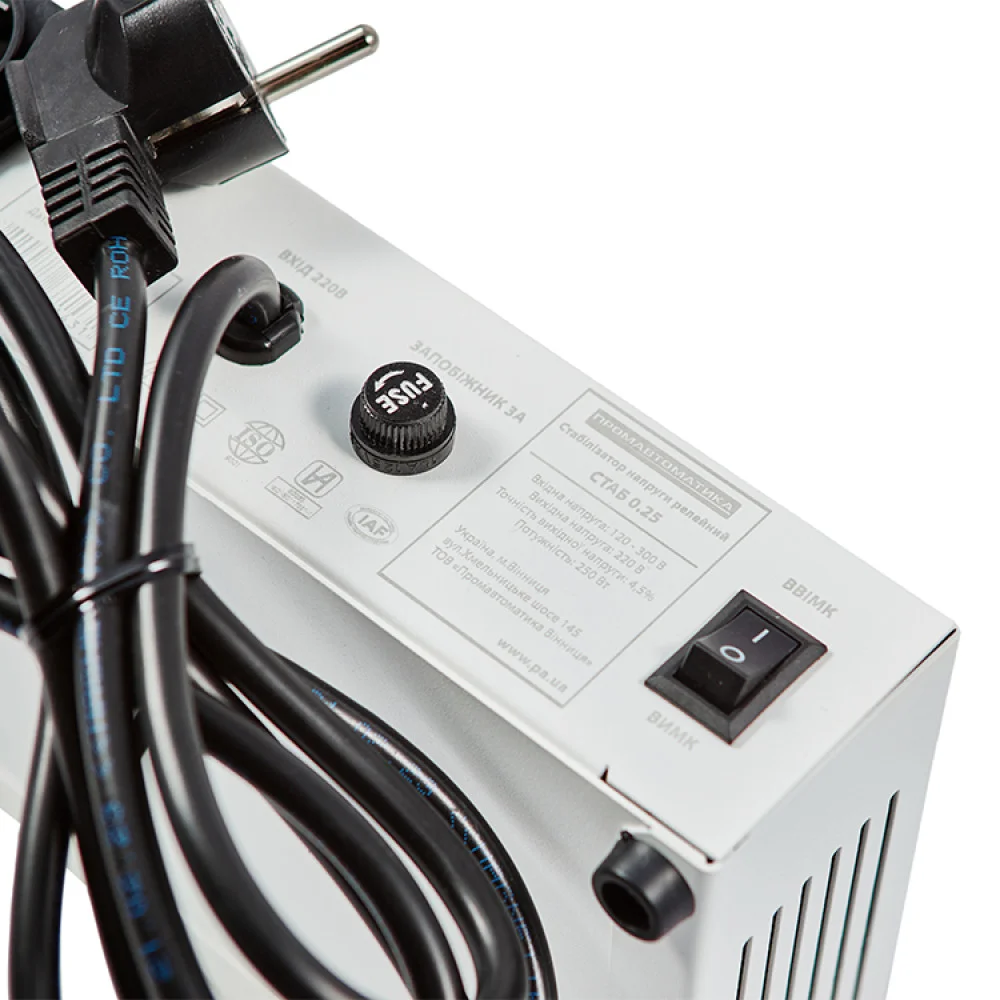 Описание Стабилизатор напряжения Промавтоматика СТАБ 0.25 релейный белый
