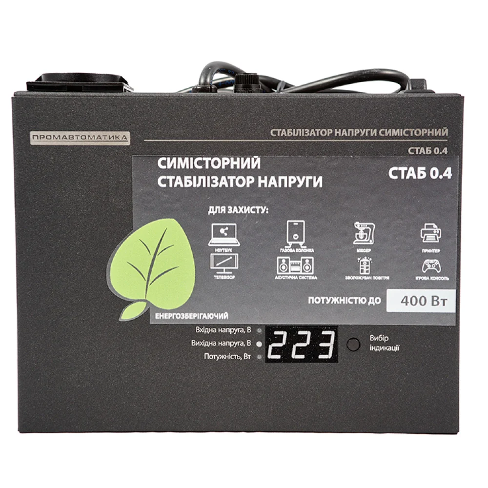Описание Стабилизатор напряжения Промавтоматика СТАБ 0.4 симисторный черный