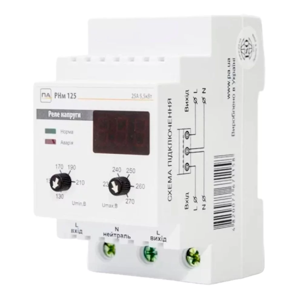 Реле напряжения Промавтоматика РНм 125 25A на рейке DIN