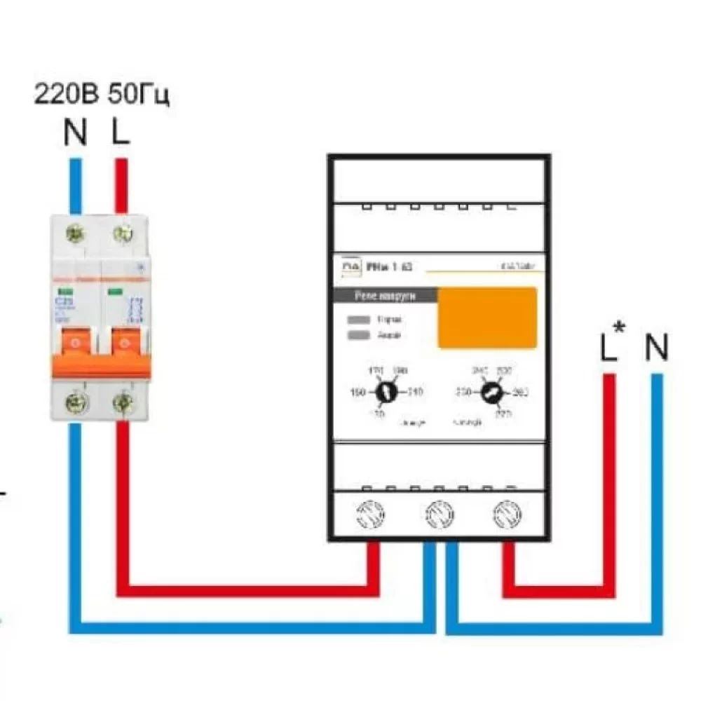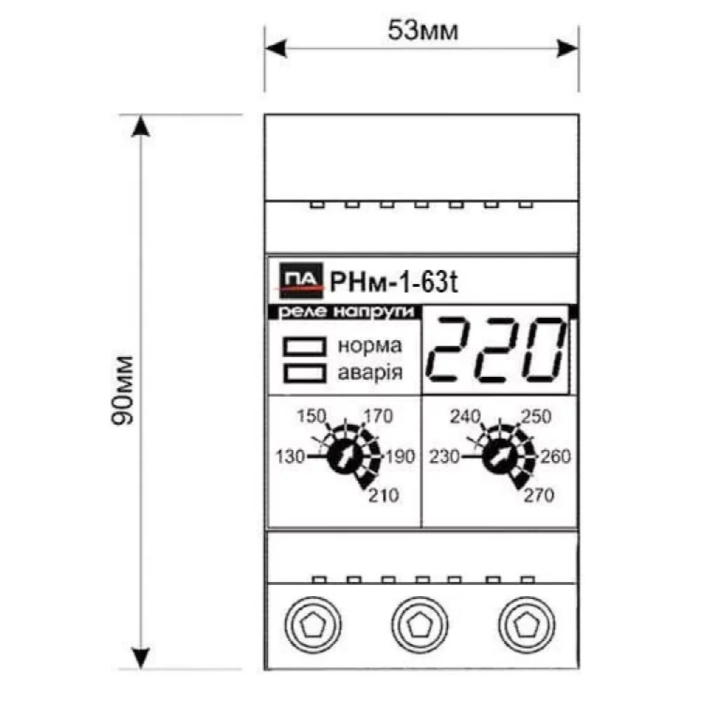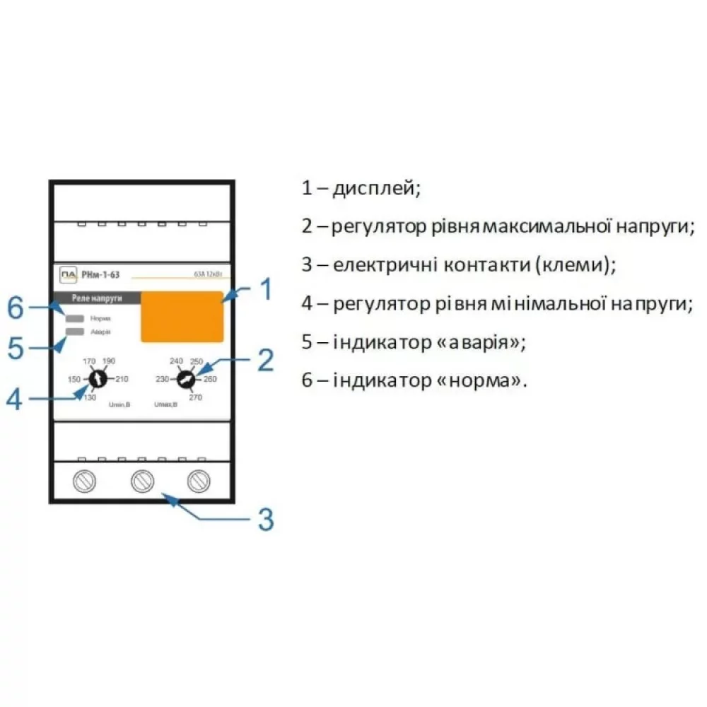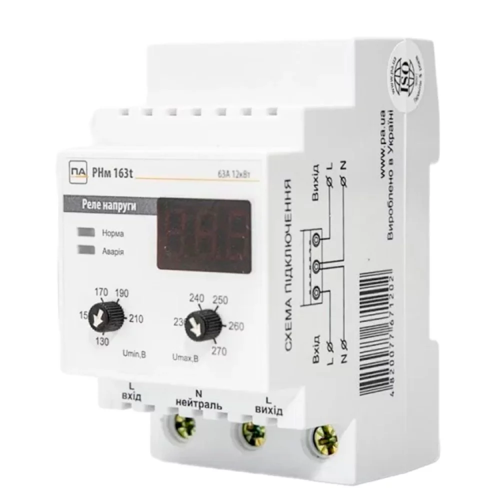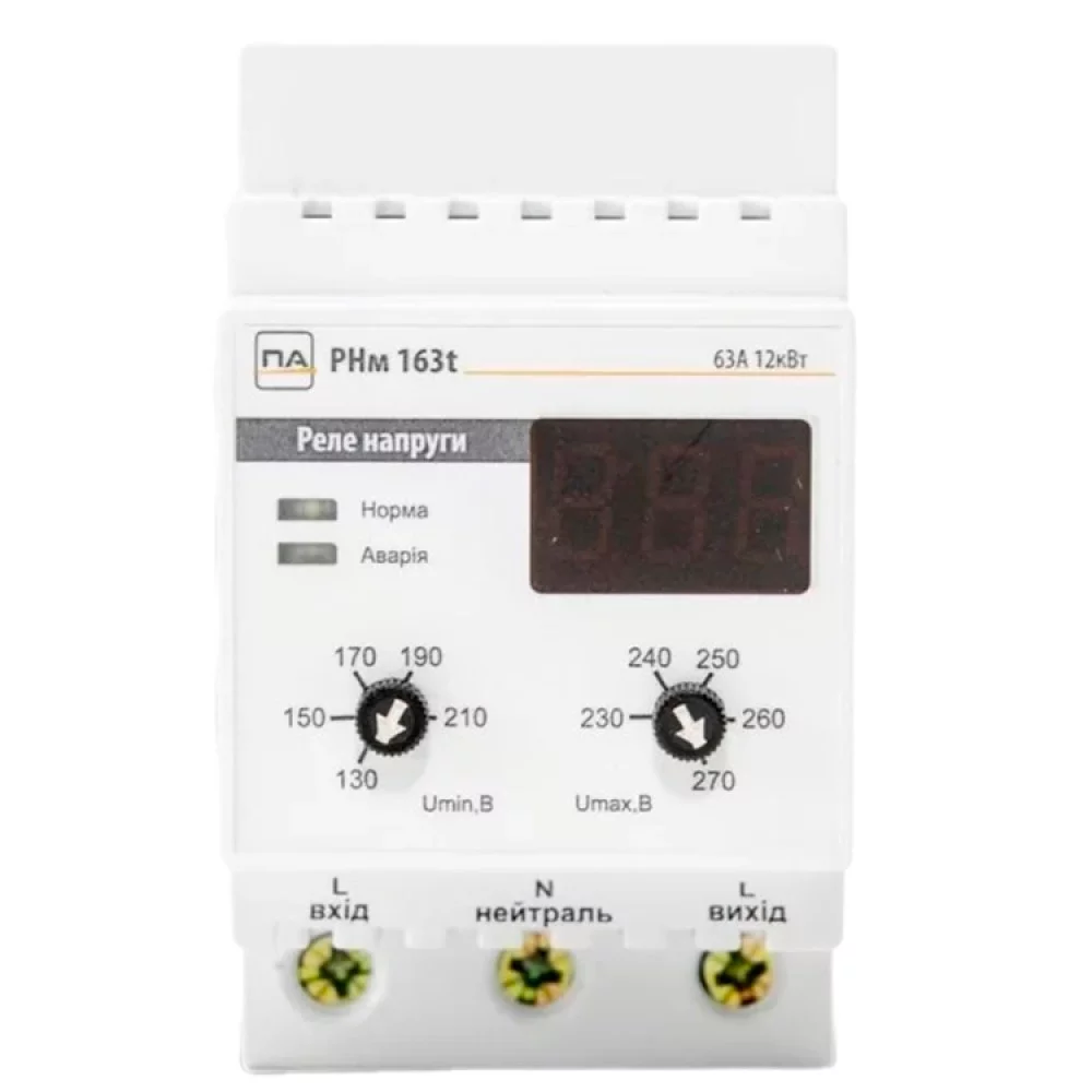Реле напряжения Промавтоматика РНм 163 t 63A на DIN рейку (термозащита)