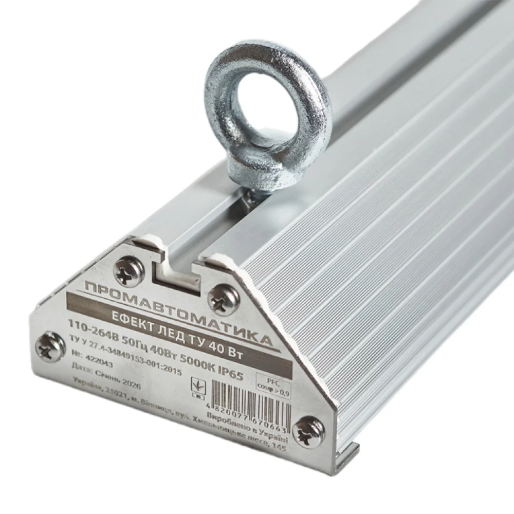 Світильник світлодіодний Промавтоматика ЕФЕКТ ЛЕД ТУ 40Вт/850-103 — енергоефективний та надійний освітлювальний прилад, призначений для якісного освітлення приміщень середньої площі. Модель оптимально підходить для використання у виробничих, складських, торгових та адміністративних зонах.